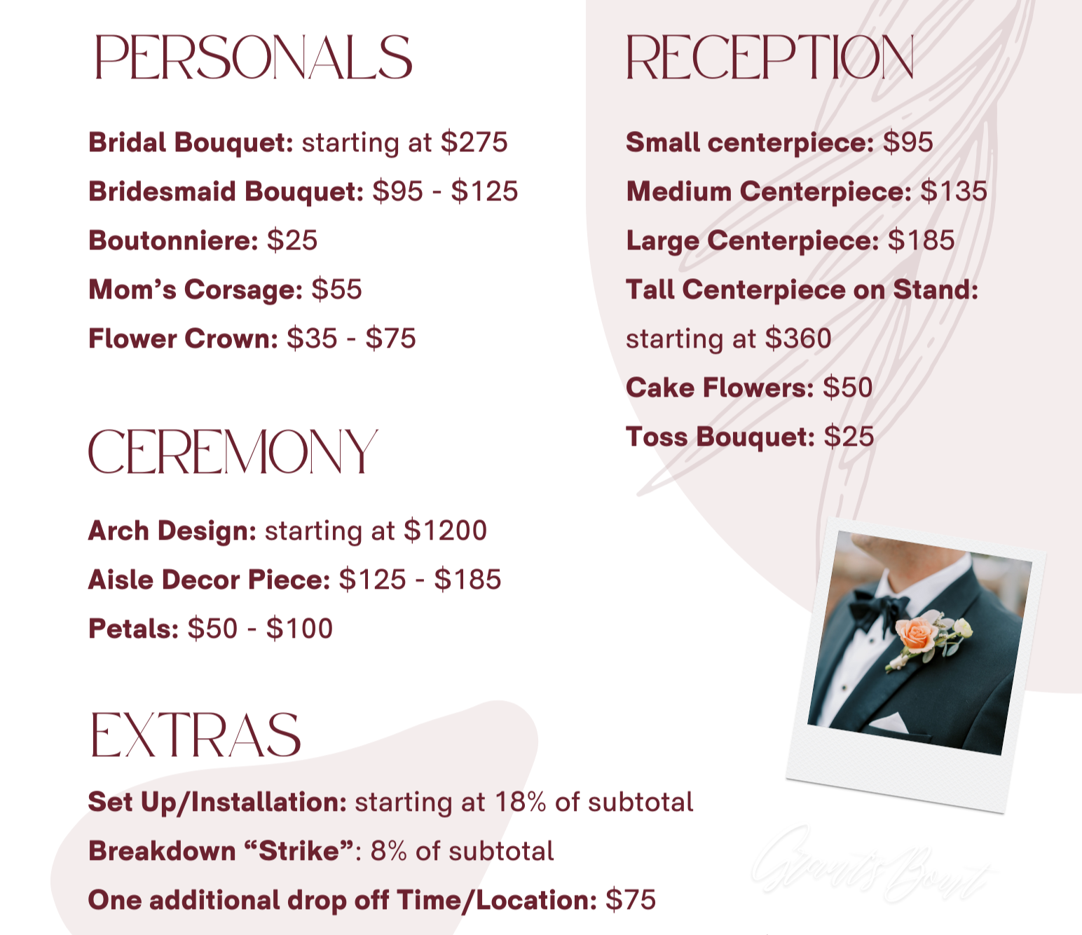Complimentary live floral mock up of a bouquet and centerpiece (within 10 miles)